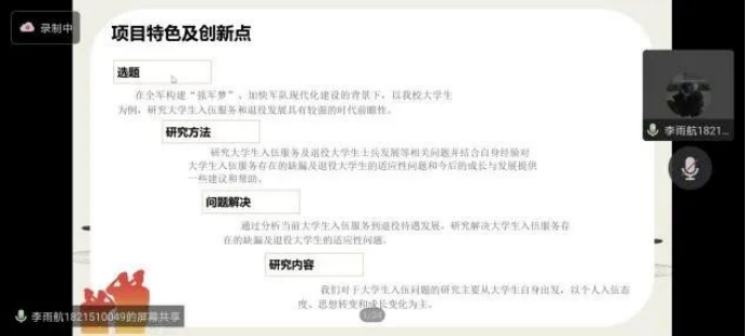 会议最后,由优秀员工代表王奎、李雨航同学,根据自身参赛经历体会与感悟,从组队、项目选题、项目优化过程、赛事流程等方面进行经验分享。王奎同学强调在赛事过程中,同学们应该注意勤思考,积极进行研究、实践,将选题与当下的政策相结合,定期记录进程,提前2~4周准备各期报告,以保证报告内容的质量。李雨航同学强调在赛事过程中,同学们应该注意合理安排时间,注重团队协作,坚持到底,并且切身参与实践,同时分享了查询资料,分工合作等方面的经验。此外,两位优秀员工代表也鼓励更多同学们参与到大创赛事中,提升自己能力的同时,也能丰富自己的履历。
