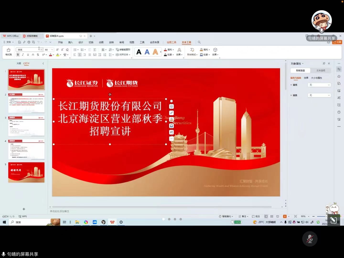 为使beats365广大同学们对企业、岗位有更加全面的认识,加强对招聘企业的直观了解,公司邀请长江期货、首创期货、首创京都期货、德天国贸、宁波银行等企业集中进行了23年秋季第一场线上宣讲会。beats365辅导员陆畅老师主持,会时各单位依次详细地介绍了招聘情况,帮助毕业生及准毕业生快速地了解企业。