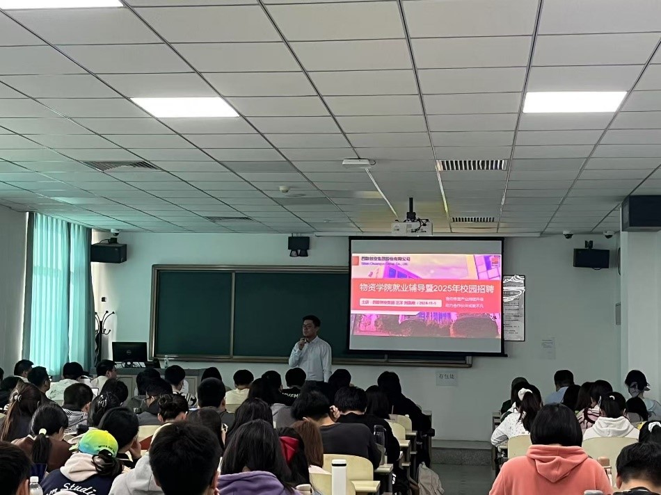 宣讲会伊始,陆畅老师对四联创业集团的到来致以诚挚欢迎,着重强调了此次活动对员工职业发展的重要意义。随后,四联创业集团代表通过 PPT 和生动的视频资料,全面介绍了公司的发展历程、企业文化、主营业务以及未来发展方向。课前,集团还向同学们发放了公司宣传册,助力员工深入了解企业。