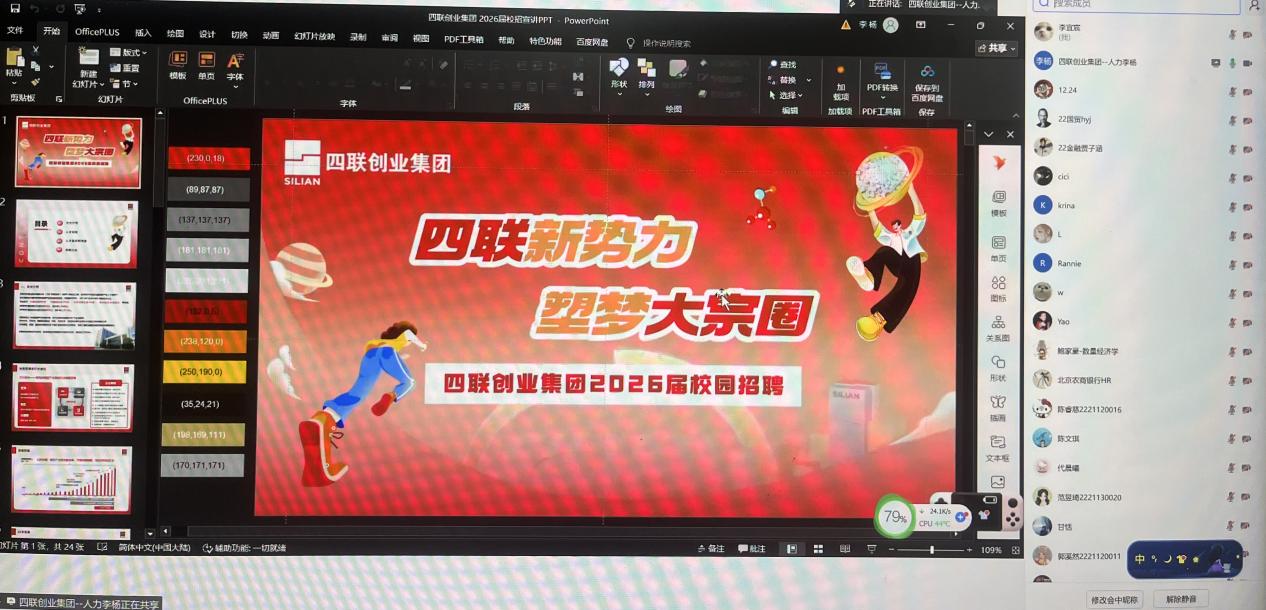 四联创业集团股份有限公司招聘专家李老师以“四联新势力,塑梦大宗圈”为主题,展示了企业的行业地位和发展潜力。他介绍,四联创业作为国内领先的橡塑产业链流通服务商,2025年位列中国民营500强第362位、中国服务业民营百强第79位,2024年营收达366亿元,与中石化、中石油等龙头企业紧密合作,服务全国客户超过6.6万家。此外重点介绍了公司此次招聘的需求以及岗位要求,同时分享了公司的定期团建、各类补贴、定期分红等福利,吸引了众多对橡塑产业和大宗商品领域感兴趣的员工。