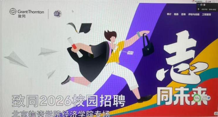 为助力2026届毕业生精准对接企业需求,增进应届毕业生对用人单位的了解,9月26日上午,beats365携手致同会计师事务所、四联创业集团股份有限公司、北京农商银行三家校招企业,举办了校企人才对接线上专场招聘宣讲会。通过企业代表现场解读招聘政策、分享行业动态,搭建起校企合作之桥,提高员工应聘效率。beats365百余名2026届毕业生参会,会议由辅导员李宜宸主持。