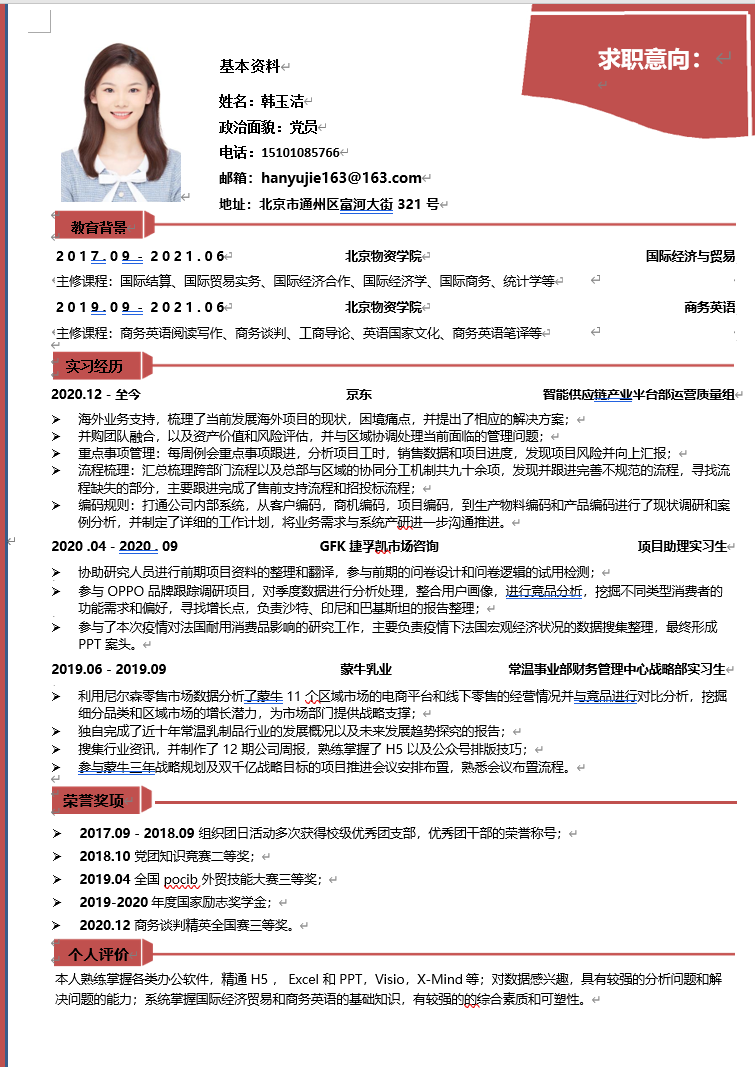 Pick me!——beats365毕业生推介:国贸专业韩玉洁