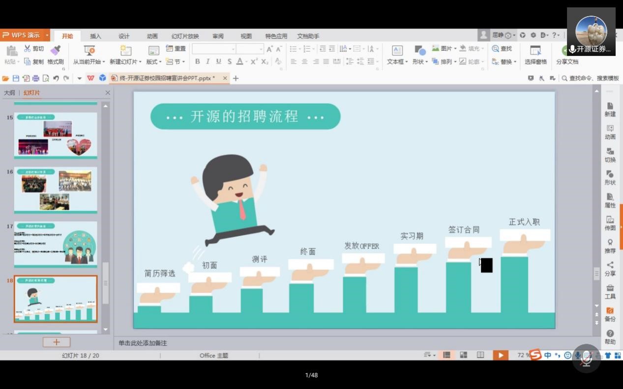 在会议上,各招聘公司依次通过PPT展示和播放宣传片的方式向同学们介绍了公司的概况、职业发展方向、薪酬福利以及招聘流程等等方面,对于本公司目前招聘的岗位进行了详细的阐述并提出了具体的应聘要求。在用人上,招聘方不谋而合地提出希望应聘者有责任心、有扎实的基础知识、较好的工作能力和足够的社会实践,可见在就业中,不同岗位的综合素质能力依旧有相通之处。前来宣讲的企业中,不少员工企业的负责人也作为员工,对毕业生的生涯规划和职业选择提出自己的想法和建议,希望毕业生能够通过实习实践提升自己的就业能力。