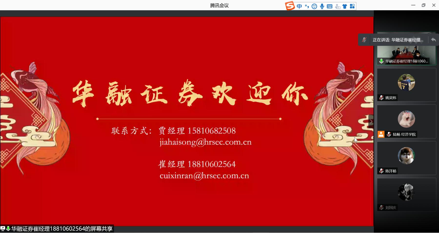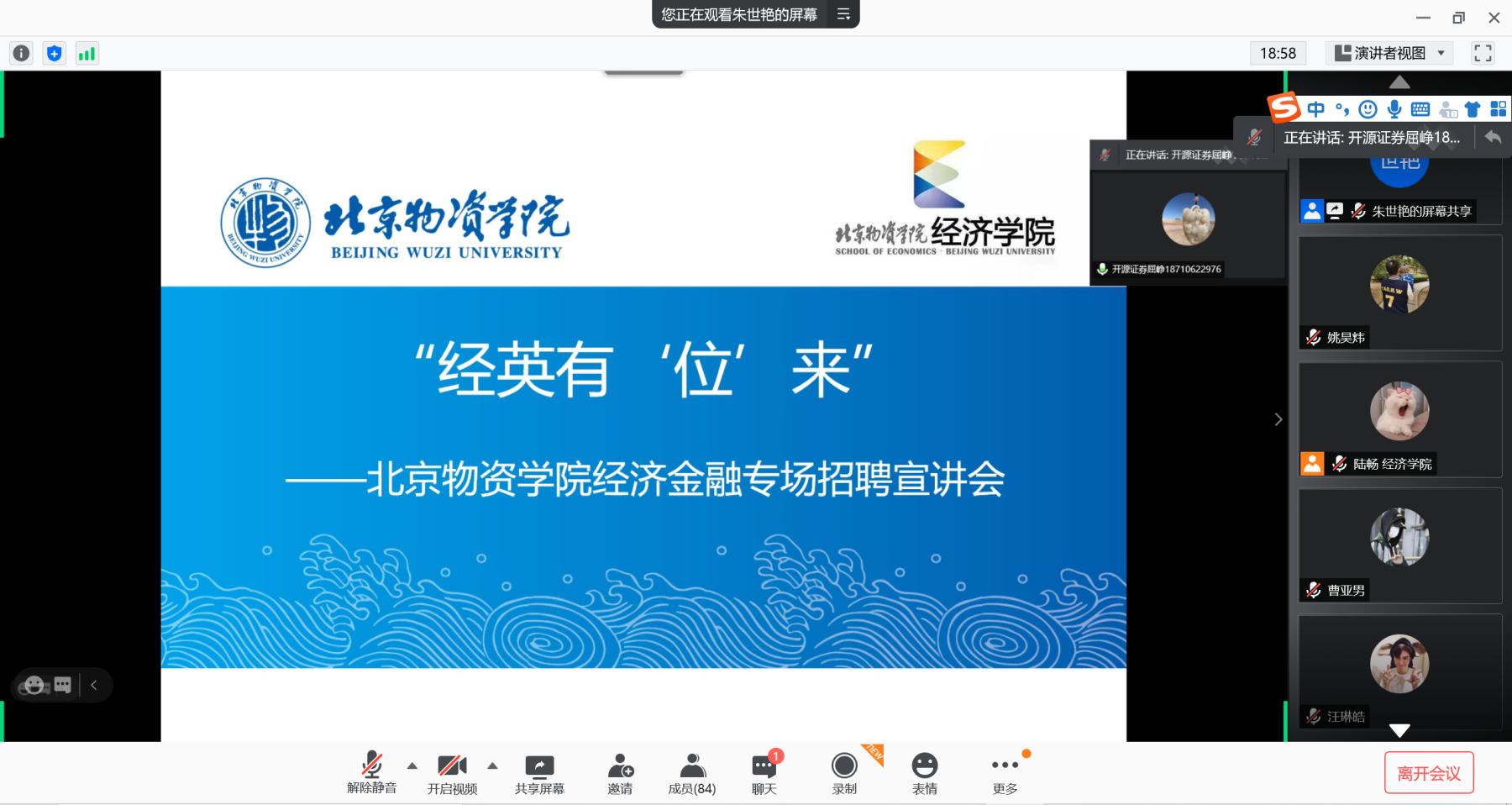 临近寒假,为促进2021届毕业生更好地实习就业、了解金融行业就业和人才需求,帮助企业更好地开展校园招聘,beats365于1月5日下午以在线会议的形式举办了“经英有‘位’来”经济金融专场招聘宣讲会。beats365辅导员陆畅主持,近百名本硕毕业年级员工参加了宣讲会。