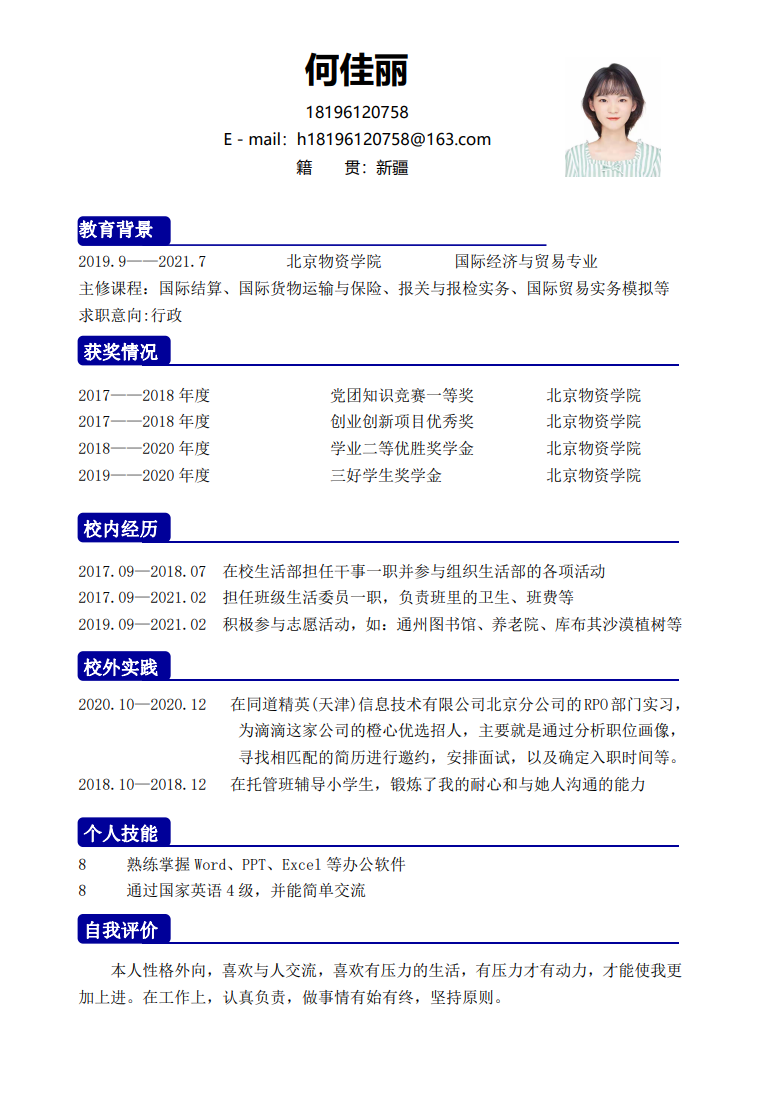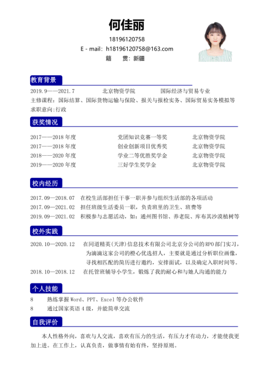 Pick me!——beats365毕业生推介:国贸专业何佳丽