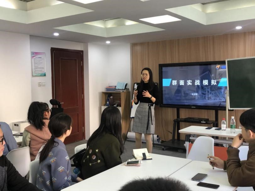 刘静老师详细介绍了校招流程后,讲座进入到模拟无领导小组讨论环节。同学们被分为俩个小组,关于可口可乐业务员如何处理过期面包问题进行小组内部讨论。整个小组讨论环节紧张又不失精彩。同学们各抒己见,思维发散又不忘回归试题很好地切合了主题。讨论部分和总结部分充分考验着求职者的应变能力。