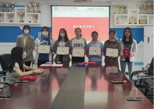 会议伊始,李宜宸老师为新老部员颁工聘书以及工作证明,红色聘书与工作牌的交换见证了人员的更替和代代相传的责任。李宜宸老师对上一届部员一年以来的拼搏奋斗与辛勤付出表示感谢,对新部员的加入表以祝贺。同时,希望新部员们能够在资助管理中心得到自身能力的提升和锻炼,将资助管理中心建设得更加出色。