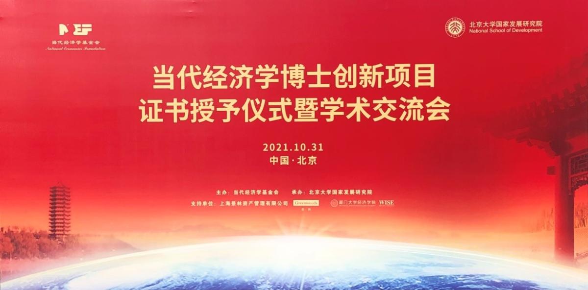 10月31日上午,由当代经济学基金会主办、北京大学国家发展研究院承办的2021年当代经济学博士创新项目证书授予仪式暨学术交流会在国家发展研究院承泽园校区隆重举行。会议公布了2021年博士创新项目入选名单,举行了博士创新项目证书授予仪式。