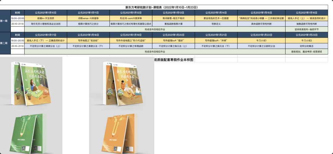详细课表见下图,书籍会在本周五发放给报名的同学。另外,在家的同学我们会安排快递!