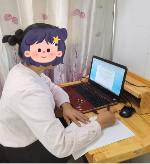 1.监控视频拍摄角度:将摄像头架设在一直处于能检测到考生本人和答题桌面所在范围内,确保监考能在腾讯会议界面清晰看到考生本人和答题桌面,能清晰看见考生作答的双手活动,如果是右手作答的考生,从右侧后上方拍摄,左手作答的考生,从左侧后上方拍摄。