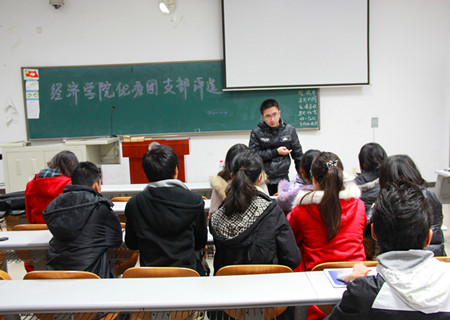本次评选活动持续了一个半小时。在评选活动的最后,王有老师做了简单的点评。在点评中王有老师表了对大一各班团支书的殷切期望,希望大一各班团支书能够积极向大二、大三师兄、师姐学习