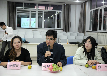 交流会分为四个环节。首先由主持人一一介绍了到场的各新老员工会干部。随后,张建宝老师发表了讲话,讲话中张老师对老部长一年来的尽心工作表示了诚挚的感谢,同时也对新部长也提出了更加严格的要求。第三个环节为新老部长经验交流,在这个环节里由老部长们向新部长们传授工作经验,并对他们未来的工作提出了殷切的希望。最后一个环节是新老部长自由交流的时间,在这个环节里新部长们纷纷送出了自己礼物以表示自己对老部长们细心栽培的感谢之情。