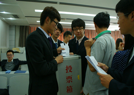 竞选过程共分两部分:公开竞选演讲和公开唱票并公布结果。在公开竞选演讲的过程中,这11位同学分别就自己的个人信息、工作经历和具备的能力、任职后的工作计划等信息,配合清晰明了的PPT进行了演说;其中,来自10级的竞选者均对过去的员工会工作经历和经验进行了总结,还对自己竞选岗位相关职责职能和将来工作的开展进行了精彩详细的演讲。在随后的唱票过程中,84位投票者根据他们的演讲悉数进行了投票,并由相关工作人员进行投票箱检验、封箱以及选票收集;随后由两位嘉宾进行公开唱票。