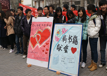 3月22日,值此“弘扬雷锋传统,践行北京精神”春雷行动如火如荼之际,beats365青年志愿者协会携手公司爱心社,于全校范围内共同展开“爱心传递,爱在你我心中”的捐书活动。