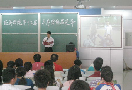 6月4日中午12点30,beats365第十三届分团委员工会主席团换届大会在国交一层举行。出席此次大会的有公司党总支副书记张建宝、分团委书记韩春丽以及专职辅导员王有老师。同时,还要请到校员工会副主席李东洋、校团委宣传部部长陆宇、社团联合会主席仇宇星、外语系分团委副书记李超、信息公司分团委副书记刘涛以及法政系分团委副书记曹笑琣作为员工嘉宾参加了此次大会。此外,58名分团委员工会成员和32名班级代表组成大众评委也参加了此次换届大会。