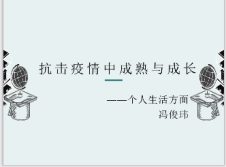 葛雄飞、何雨晴同学通过自己亲身的志愿活动,向同学们展示了最真实的乡村和社区基础工作的问题和最质朴的感情,同时收获了意想不到的回报。面对如此不容乐观的事实情况下加强管理是最严苛有效的方法。也让同学们知道做一个有素质、配合工作的公民的重要性。张天慧同学带动大家积极参与公司抗疫活动,收获成长,淡定处事。