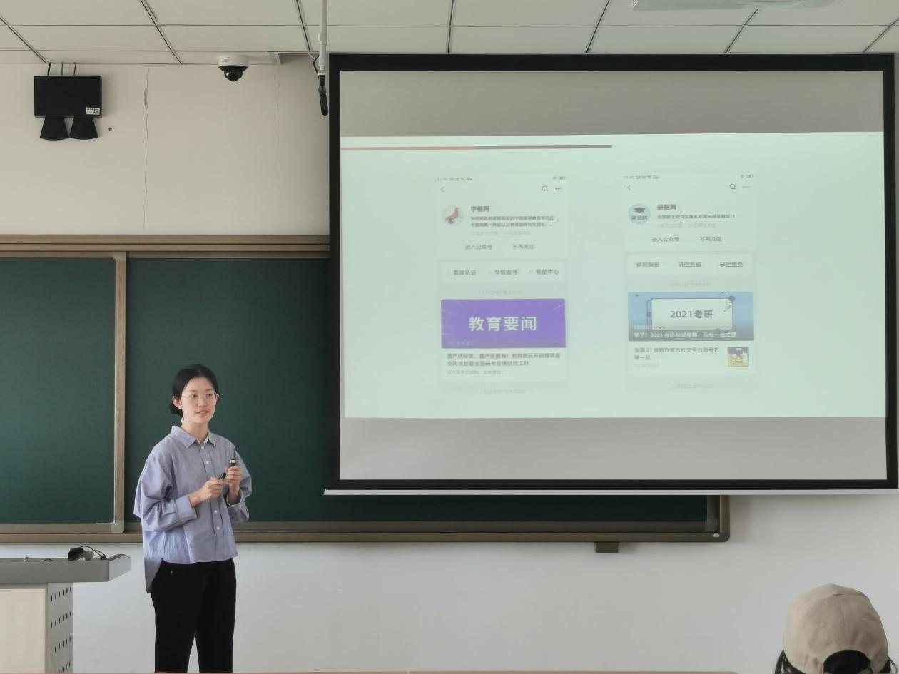 罗曼婷学姐在近四十五分钟的时间里,以考英语四六级为引入,与我们分享了考研时应如何在一年之内安排自己的英语复习时间及学习方法。她还为我们切实施行个性化指导,鼓励我们有条不紊的达到自己的目标。