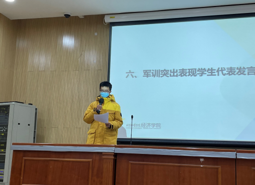 21国金班陈宇翔同学作为军训优秀代表给我们做了精彩的发言。他表示唯有坚持不懈,顽强不息,奋勇拼搏,才能成就一番事业,收获成功。我们相信每个同学都对军训有不同的感受,但无论感受如何,大学军训一生只有一次,我们或多或少都要在这其中得到成长,得到磨练,这才是军训的真正目的。