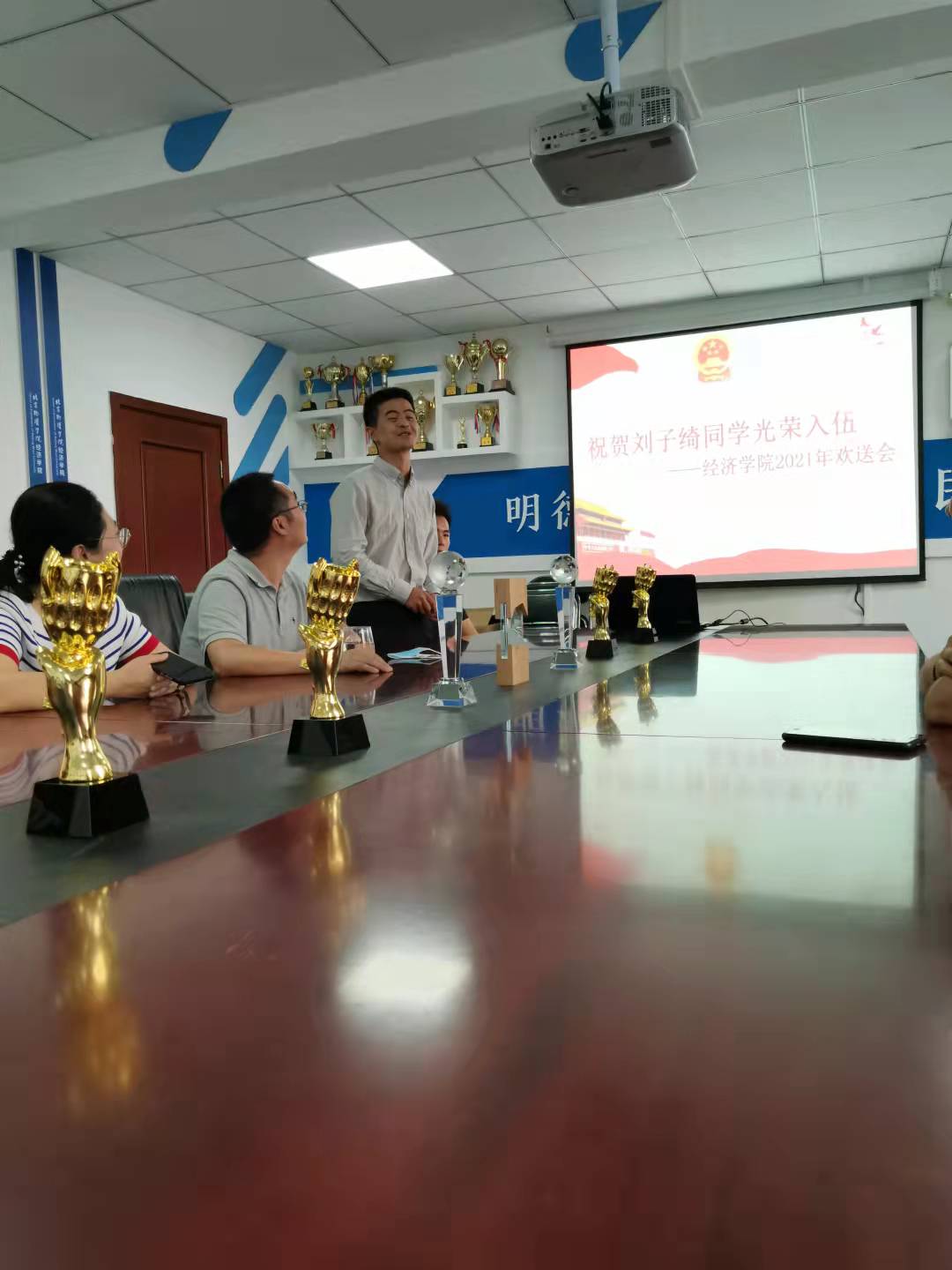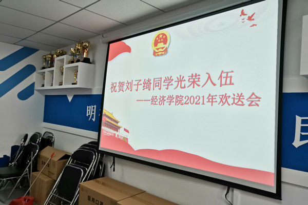 刘子绮同学发言表示对公司老师的关心支持,同学的指导帮带十分感谢,在今后的征程上也一定不会忘记自己是一个经院人。进入部队后一定会尽快适应,踏实努力,牢记各位老师同学的殷切期望,为接下来的军旅生涯树好标杆,立起经院人的好样子。