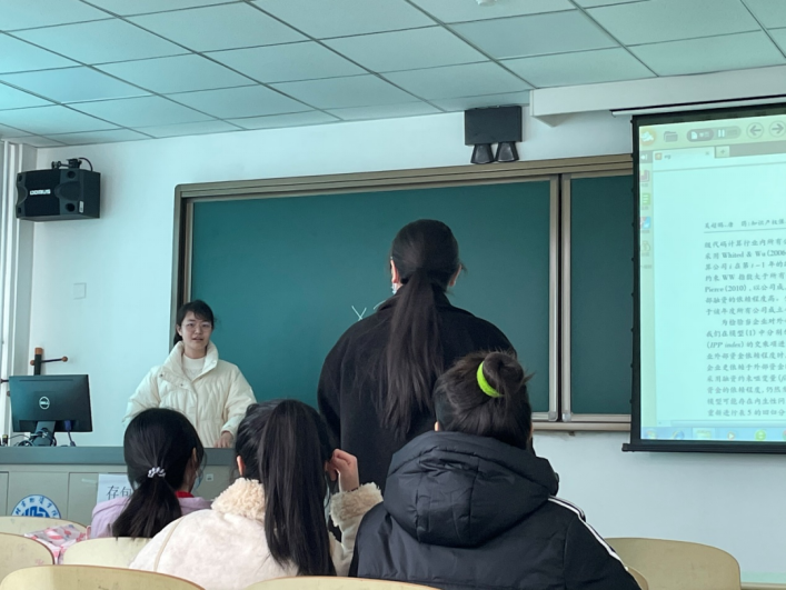 第三位分享者是孔思霁,2020级学硕第二名,曾获学业奖学金一等奖。她从学术论文分类、实证研究基本框架、如何确定论文选题、如何查找文献,四个方面详细介绍了如何做实证研究。在学术论文方面,学术论文基本分为理论型论文,实证型论文两大类,理论型论文又可分为综述性论文和述评性论文。在实证研究基本框架方面,她以具体论文为例,从标题、摘要、引言与文献综述、提出假设、实证、结论,六个方面深入介绍论文总体框架。在如何确定论文选题方面,她将从选题重要性、好的选题要求、选题来源三个方面给予大家选题建议。最后,她从如何寻找中文文献和英文文献两方面介绍了文献检索,同学们获益良多。