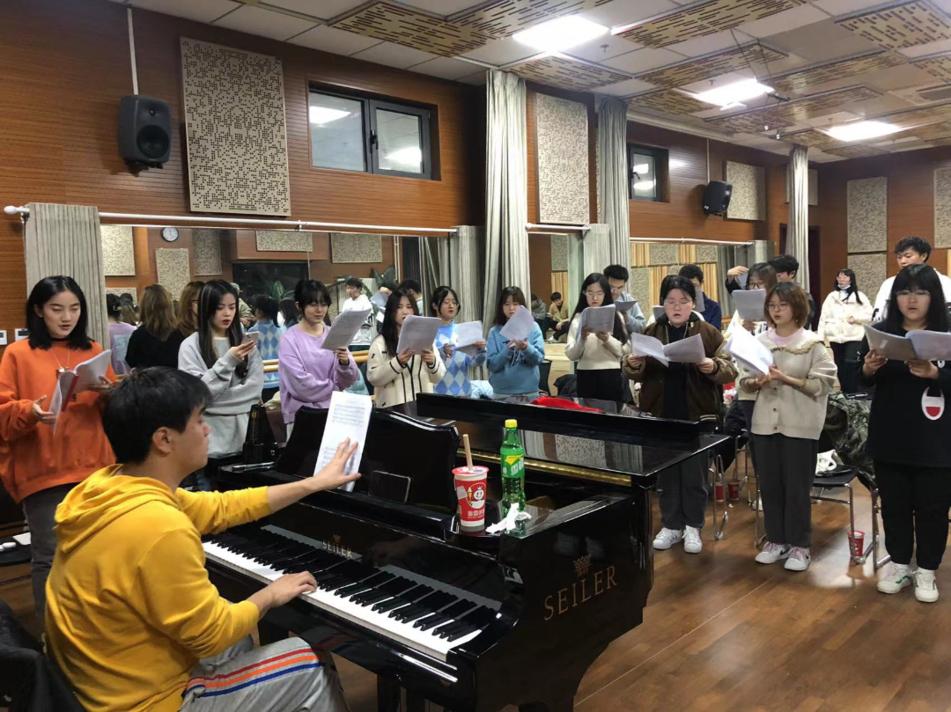 在得知一二九合唱比赛的消息后,对合唱抱有较高兴趣及热情心态的经院学子们各个摩拳擦掌、跃跃欲试,都想为此次比赛贡献一份属于自己的力量。大家积极踊跃报名,并进行面试。参加面试的同学一展歌喉,以最好的精神面貌与崭新的精神姿态向面试人员展现了自己对于音乐的理解与掌握。经过专业人员的认真筛选,许多同学成功入选。入选的同学们纷纷认真投入到合唱比赛的准备中。