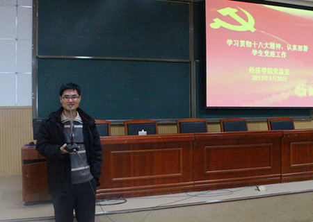 随后,张建宝老师针对员工党员的培养、发展和长效教育、管理工作等方面作了讲话。他指出,作为老员工党员首先要有党员意识,要能在学术方面、社会工作及综合素质能力上有很好的表现,并以自我发展的需要带动其他同学的发展,并对在座党员提出每个人都要参与第八届“经济文化节”的青年经济论坛的论文征稿中。另外,公司非常重视对员工党员长效发展管理工作,本学期重点加强这个部分的建设,员工党员要在学习交流和实践活动中不断强化党员意识,做到认真履行党员义务,如按时参加党员会议,按期交纳党费等,同时,更要在学习、工作和综合表现等各个方面发挥自己的先锋模范作用,为周围的其他人树立良好的榜样,带动大家一同进步。