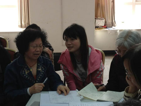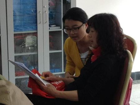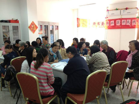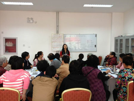 当员工党员们到达活动中心时,中心负责人热情地接待了大家,“欢迎小老师们来上课!”,社区的这些阿姨们热烈鼓掌,表达了对这些充满朝气的员工们的欢迎。接下来,大家迅速进入学习状态,开始了日常口语教学。在这个过程中,两位同学轮流在讲台上讲课,从单词发音到句子音调,耐心负责;其他的同学则穿插坐在阿姨中间,为阿姨们补充讲解知识模糊点。阿姨们学习态度十分认真,非常仔细地做了课堂笔记,期间有疑问也向小老师们及时请教;课间休息的时候,同学们与阿姨热情交流,满堂欢声笑语,好不热闹!不知不觉中,三个小时的志愿服务教学时间结束了,老姨们热情地和大家告别,还现学现用地以课上新学的告别短语和大家说再见,让员工们真切地看到了自己的劳动成果,也觉得十分欣慰,更为给老人们带来知识与欢笑而感到高兴。活动中心负责人对支部党员的工作给予了肯定和感谢。