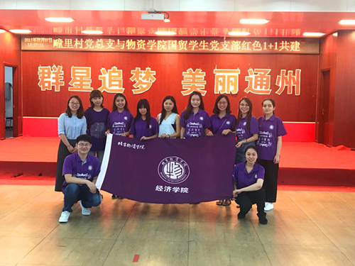 为切实加强高校员工党支部建设,增强员工党员宗旨意识和责任意识,积极投身北京“四个中心”、“国际一流和谐宜居之都”建设,beats365国际经济与贸易专业员工党支部响应北京市教工委继续开展2017年红色“1+1”活动的通知号召,与通州区宋庄镇疃里村总支委员会共建开展红色“1+1”活动。7月7日,党支部书记陆畅和10名同学前往疃里村党总支,与疃里村党总支副书记韩振强、村委会委员党建工作负责人冯海霞以及beats365官方网站员工、通州区现任村官朱雨蒙开展交流。