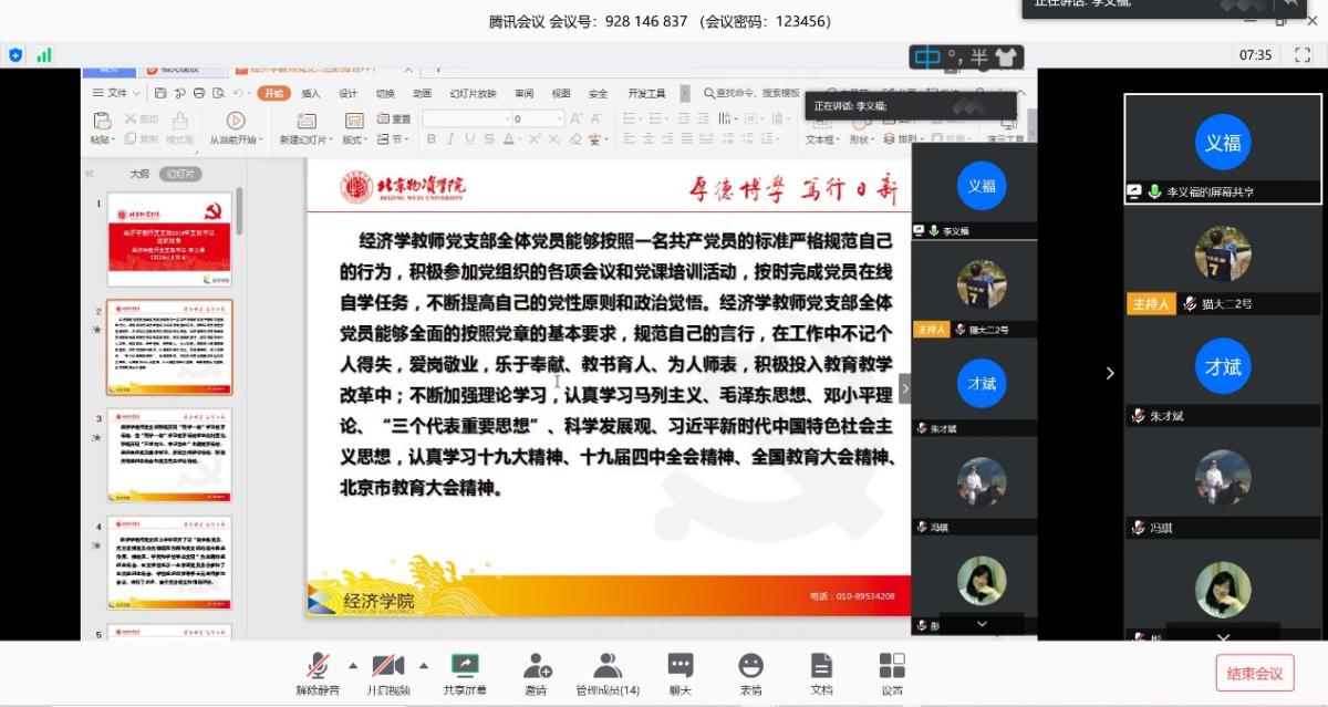为总结评估2019年公司基层党支部党建工作开展情况,汲取经验,弥补不足,稳步提升2020年公司党建工作整体质量,公司党委依照《北京物资公司党支部工作考核测评办法》(试行)于4月28日14点召开2019年度线上党支部书记述职总结暨支部工作考核测评会。公司党委委员及各师生党支部书记参加会议,会议由党委书记于冠华同志主持。