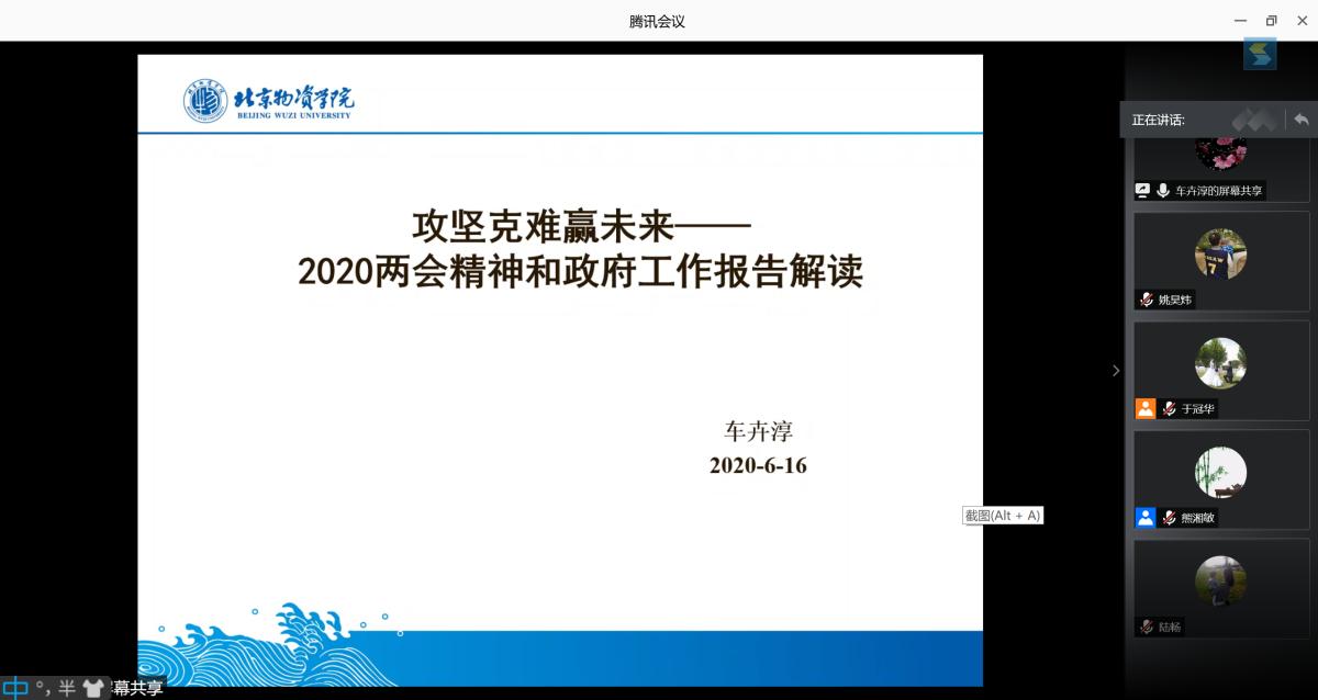 首先,车卉淳教授结合实际从GDP增速目标、就业目标、物价目标、对外贸易目标等方面对2020两会精神和政府工作报告进行了详细解读。政府工作报告是一个务真求实的报告,充分体现了新发展理念、人民至上和以人民为中心的发展思想,对于统筹推进疫情防控和经济社会发展,确保完成决战决胜脱贫攻坚目标任务,全面建成小康社会具有十分深远的重大意义。