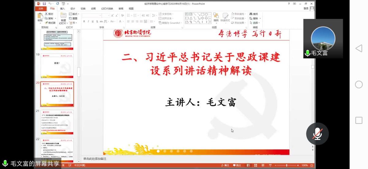 2020年6月16日下午14:00,公司党委理论中心组在腾讯会议举行2020年第六次理论学习,会议由公司党委书记于冠华主持。