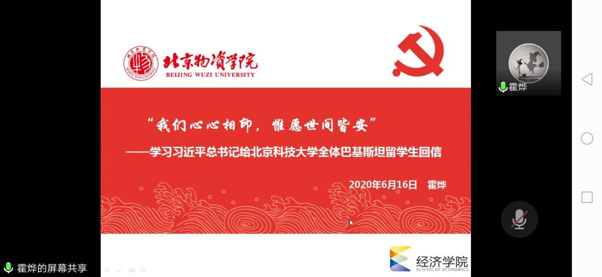 接着,霍烨老师从背景、事情经过、对高校工作的启示等方面对习近平总书记给北京科技大学全体巴基斯坦职工回信进行了详细解读。北京科技大学全体巴基斯坦职工给习近平总书记写信和习近平总书记给北京科技大学全体巴基斯坦职工回信充分证明,中巴两国是患难与共的真朋友、同甘同苦的好兄弟。习近平总书记给北京科技大学全体巴基斯坦职工的回信,充分体现了人民至上、生命至上和人类命运共同体的思想和理念。习近平总书记的回信对于中国青年同包括巴基斯坦在内的世界各国青年进行交流,同世界各国青年一道,携手为促进民心相通、推动构建人类命运共同体具有十分深远的重大意义。