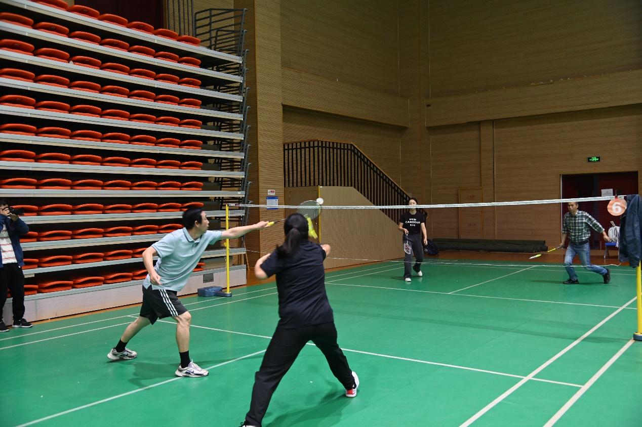 本次比赛共分八组进行主客场循环赛,设置男双、女双、混双三个项目,采用一局定胜负制,率先得到21分的一方赢得当局比赛。赛场上气氛热烈,师生彼此团结协作,老师们稳扎稳打,攻防有序,员工们手感火热,配合默契,时而奋力扣杀,时而轻盈吊球。力量与速度的完美结合,使比赛高潮迭起,喝彩声不断。