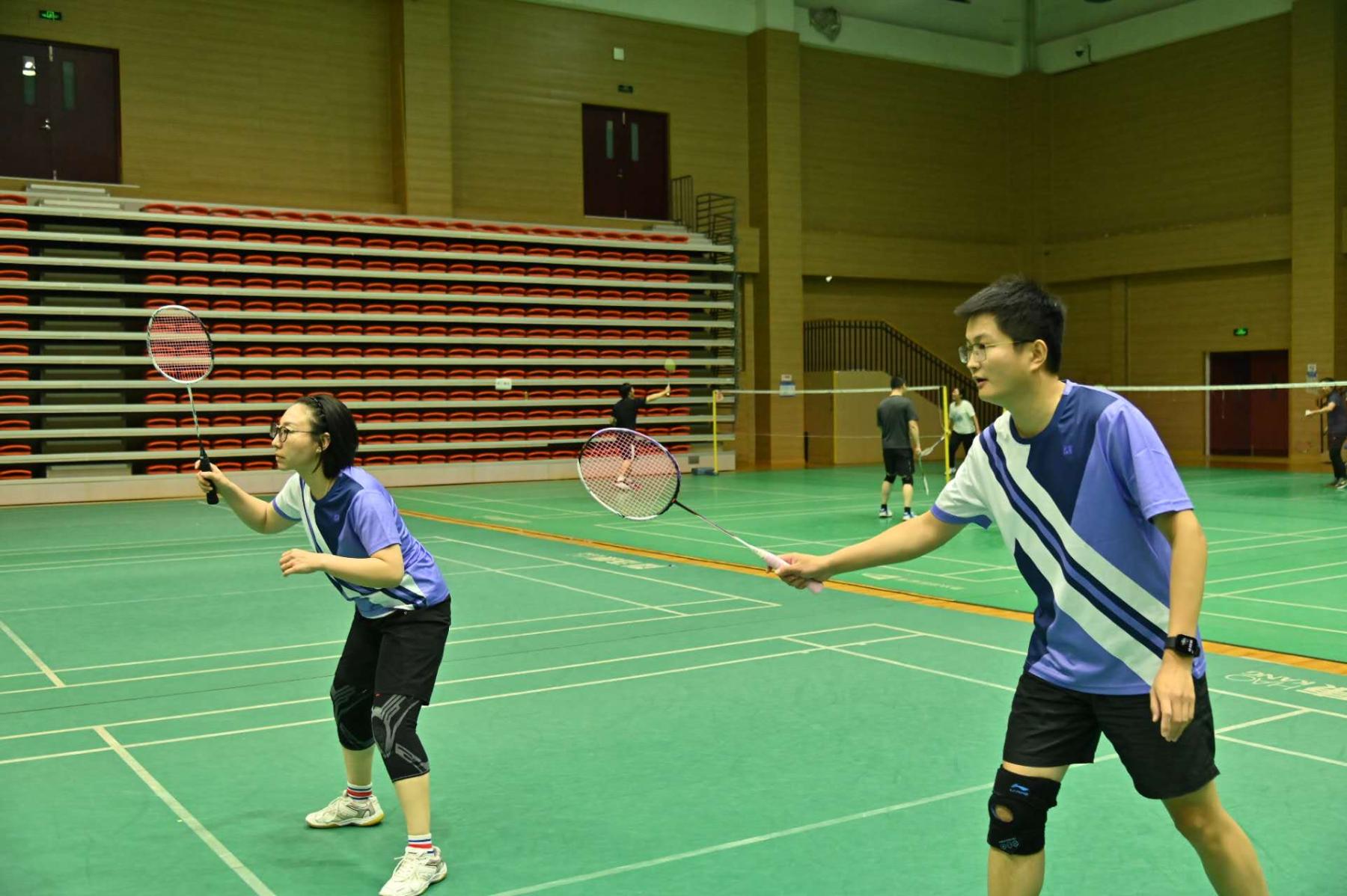 参赛选手们在赛场上活力四射、斗志昂扬,每一次精彩的扣杀、巧妙的网前截击都引来观众的阵阵喝彩。比赛不仅展示了教职工们的高超技艺,更体现了他们顽强拼搏、团结协作的精神风貌。