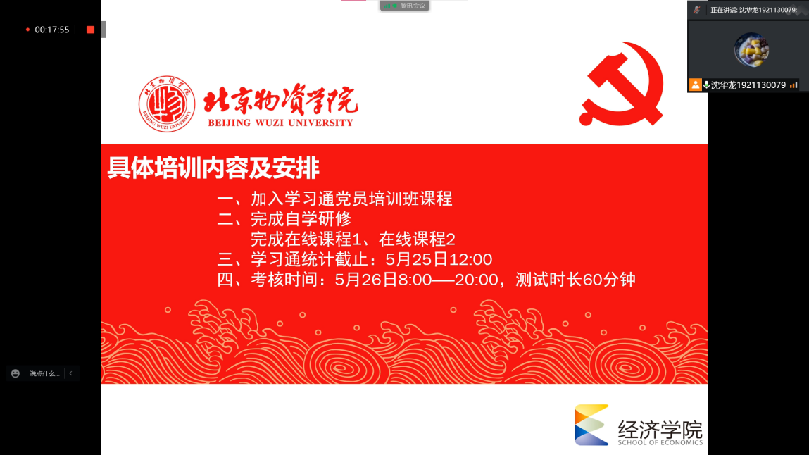 其次,毛文富老师指出党员需要在各方面做好表率,做到“急难险重任务,我在第一线”,在一切工作中挺身而出,不惧担责任,只为尽己能。同时,在培训课程学习方面,毛文富老师强调,同志们既要注重保质保量完成线上理论学习,提高对自身的要求,将方针政策、相关理论的学习当作必备的自我培养;也要注重提升学习效果,在日常生活中将理论付诸实践,发挥党员的先锋作用。在讲话的最后,毛文富老师告诫同志们,要珍视党员的身份,做好党员的表率,入党是经过深思熟虑的,要始终保持入党的初心,勇担时代的使命,为党组织添砖加瓦。