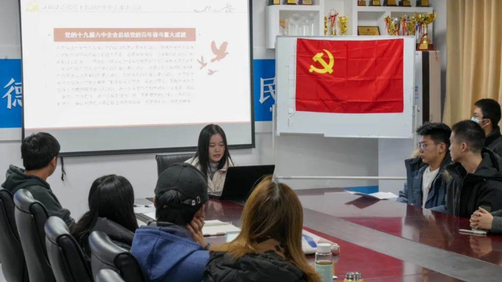 党员、积极分子们交流发言。范亚娟、罗国庆、张芝娟、张文瀚发表了各自学习感悟。大家一致认为吾辈应从3.6万字的《决议》中提纲挈领、条分缕析地学习掌握其深刻内涵、创新观点、核心要义。