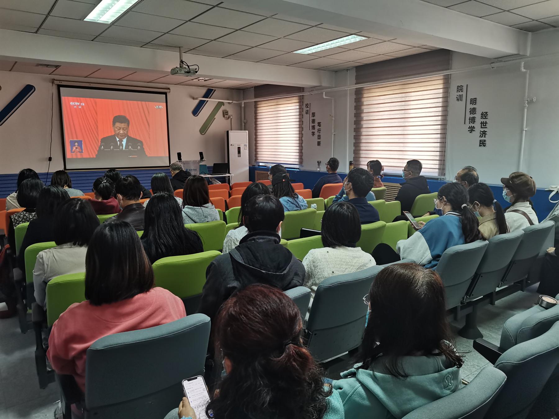 伴随着大会现场代表们的热烈掌声,师生们的内心非常激动澎湃。大会主题催人奋进,已感觉到新的号角在吹响;过去五年的成就和新时代十年的伟大变革令大家欢欣鼓舞,“三件大事”犹在眼前; “三个务必”的嘱托让大家铭记在心,这是走好新赶考路的必然要求;对解决台湾问题的坚定态度紧紧抓住每一个人的心,祖国的强大在此时倍感强烈;中国式现代化的特色和本质要求令人耳目一新,道路自信更加坚定;“要增强全党全国各族人民的志气、骨气、底气,不信邪、不怕鬼、不怕压,知难而进、迎难而上”,总书记的话句句掷地有声,“五个重大原则”坚定不移;“教育、科技、人才是全面建设社会主义现代化国家的基础性、战略性支撑”,总书记的话是一份沉甸甸的的责任和使命;“五个必由之路”是继往开来的政治宣言,必须倍加珍惜、始终坚持,咬定青山不放松。观看二十大开幕会,聆听习近平总书记的报告,让广大党员和师生对全面建设社会主义现代化国家、全面推进中华民族伟大复兴的光明前景充满信心。