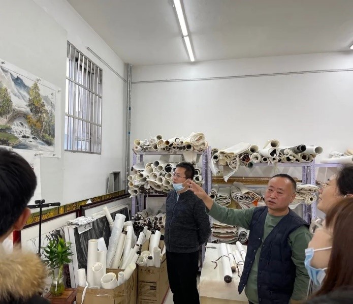 双方一起走访考察宋庄的艺术品市场和画家艺术家。据了解新冠疫情背景下,“艺术品直播”线上平台效率高、市场大、机会多、风险小,人才缺乏。丁各庄村愿意为对电商发展感兴趣的同学提供实践的机会和平台,号召广大青年员工积极参与,在笔墨中观世界,共同推动艺术品直播电商的发展,助力乡村振兴建设。