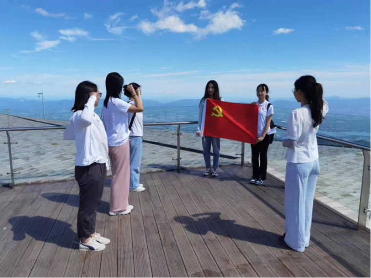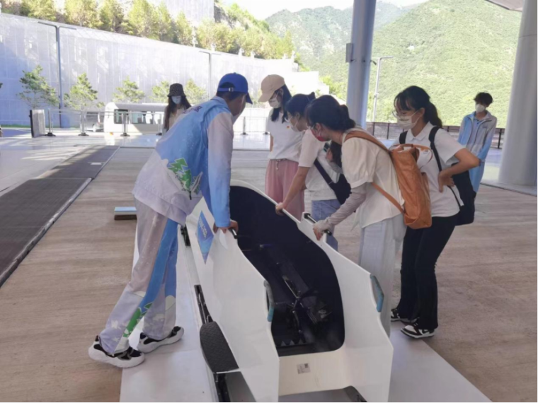 在访谈结束后,我队全体成员实地参观奥运健儿为国奋斗的比赛场地。首先我们乘坐缆车,俯视着高山滑雪赛道的各个组成部分,登上赛道最高峰,参观了起点场地、造雪设备、救援与运输交通工具等。值得纪念也是最有意义的是,我们站在冬奥赛区的最高峰上,面向一览无余的赛区建设,面向党旗,一同重温入党誓词。随后参观了国家雪车雪橇中心,真切感受运动员们在赛场上所面临的挑战,体验雪车雪橇的比赛感受。最后走访了运动员们在赛期闭环时所居住的冬奥村,这里基础设施建设全面,居住区、餐厅等区域科技感氛围浓厚,既蕴含着中国文化元素,也体现了包容的多元性。