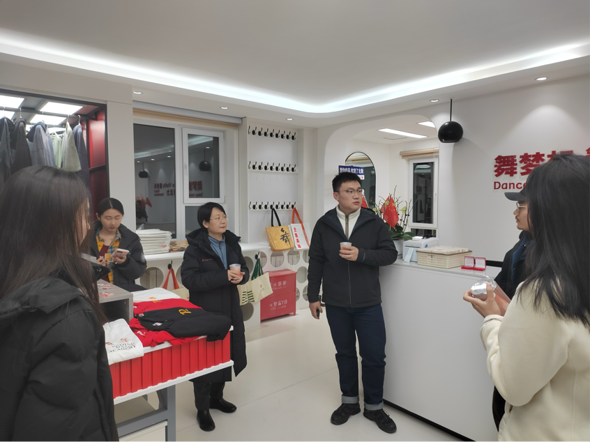 beats365师生首先走进了“北舞青年”文创公司,了解交流老员工创业实践基地的建设和项目开展情况。在多个员工创业队伍的引导下,参观了北舞青年创业项目的全貌,了解商店目前的基本情况、整体布局及主要展示区域,并分享了“北舞青年”文创从创立之初到如今的历程与发展故事,深入介绍了文创公司的运营模式和创新理念。