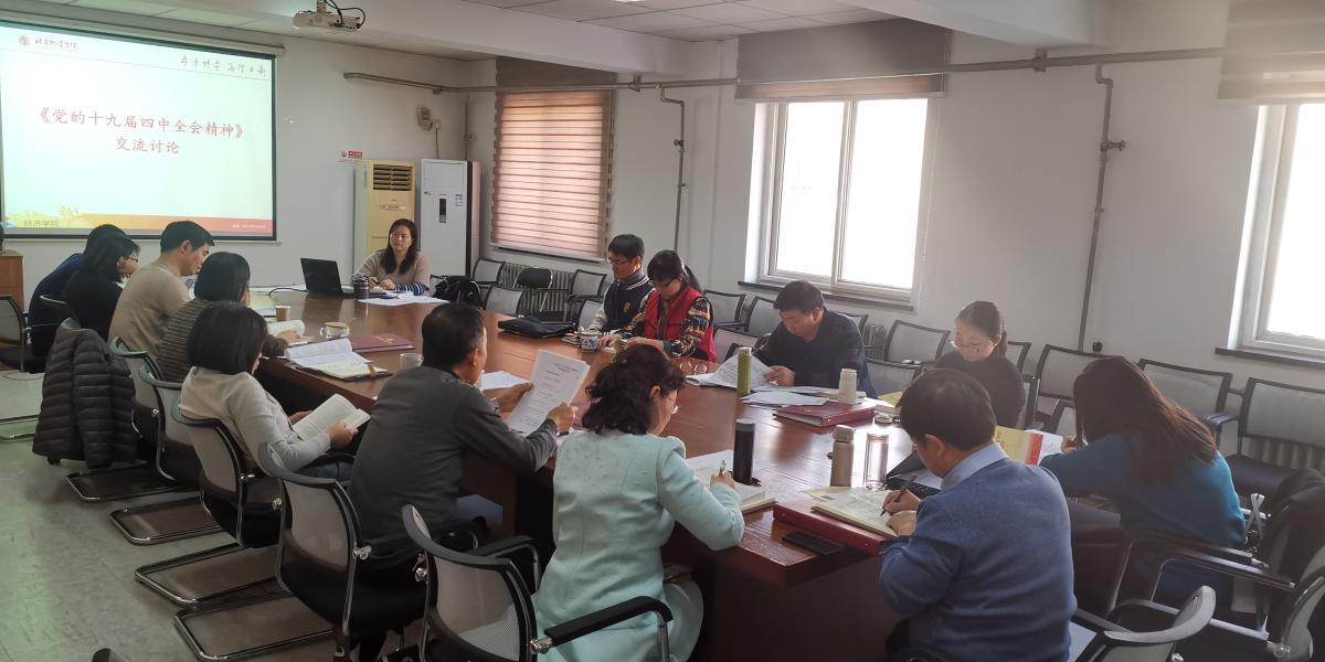为深入学习贯彻党的十九届四中全会精神及《中共中央关于坚持和完善中国特色社会主义制度、推进国家治理体系和治理能力现代化若干重大问题的决定》,公司党委于11月25日在人文楼516继续开展“书记讲党课”系列活动,专题学习研讨党的十九届四中全会精神。活动由公司党委书记于冠华主讲,党委理论中心组成员张国胜(主持工作副经理)、刘崇献、原玲玲、张建宝、车卉淳、刘玉奇、李义福、陶冶、李彤、朱才斌、韩春丽、姚昊炜、陆畅、夏蓓、冯琪参加此次学习研讨活动。