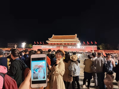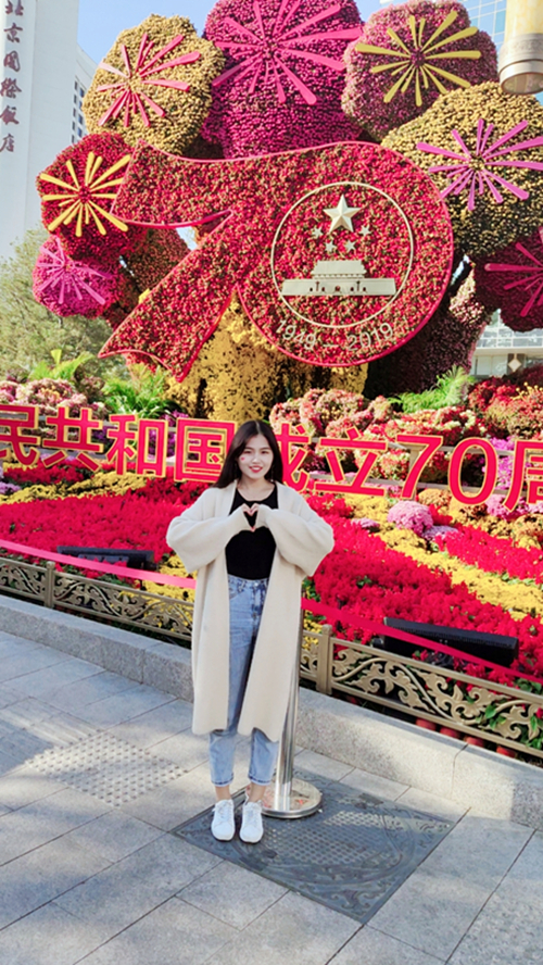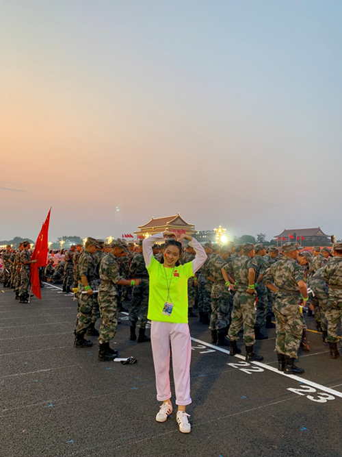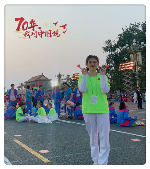 在这普天同庆的国庆夜,能在天安门广场下面见证这一历史性的时刻,我能代表beats365国际经济与贸易员工党支部去参加这么有意义的活动,我无比自豪~我也要为祖国母亲做点什么,哪怕只是作为员工上好每一节课,做好每一次作业,认真对待国贸专业,争做最强国贸人~衣服上贴着小心心的国旗,代表着我最最真挚热情的心,我爱你中国!