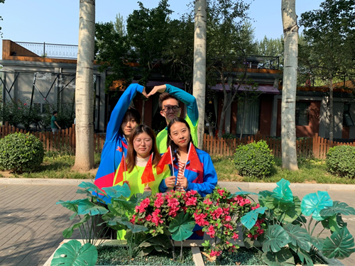 金融学专业员工党支部支委四人身穿国庆当晚联欢服装手持国旗用身体绘出的心形,我们于国庆当晚在天安门演出,以党员身份参加本次活动让我们倍感兴奋与感激!我为祖国助力,我为祖国比心!