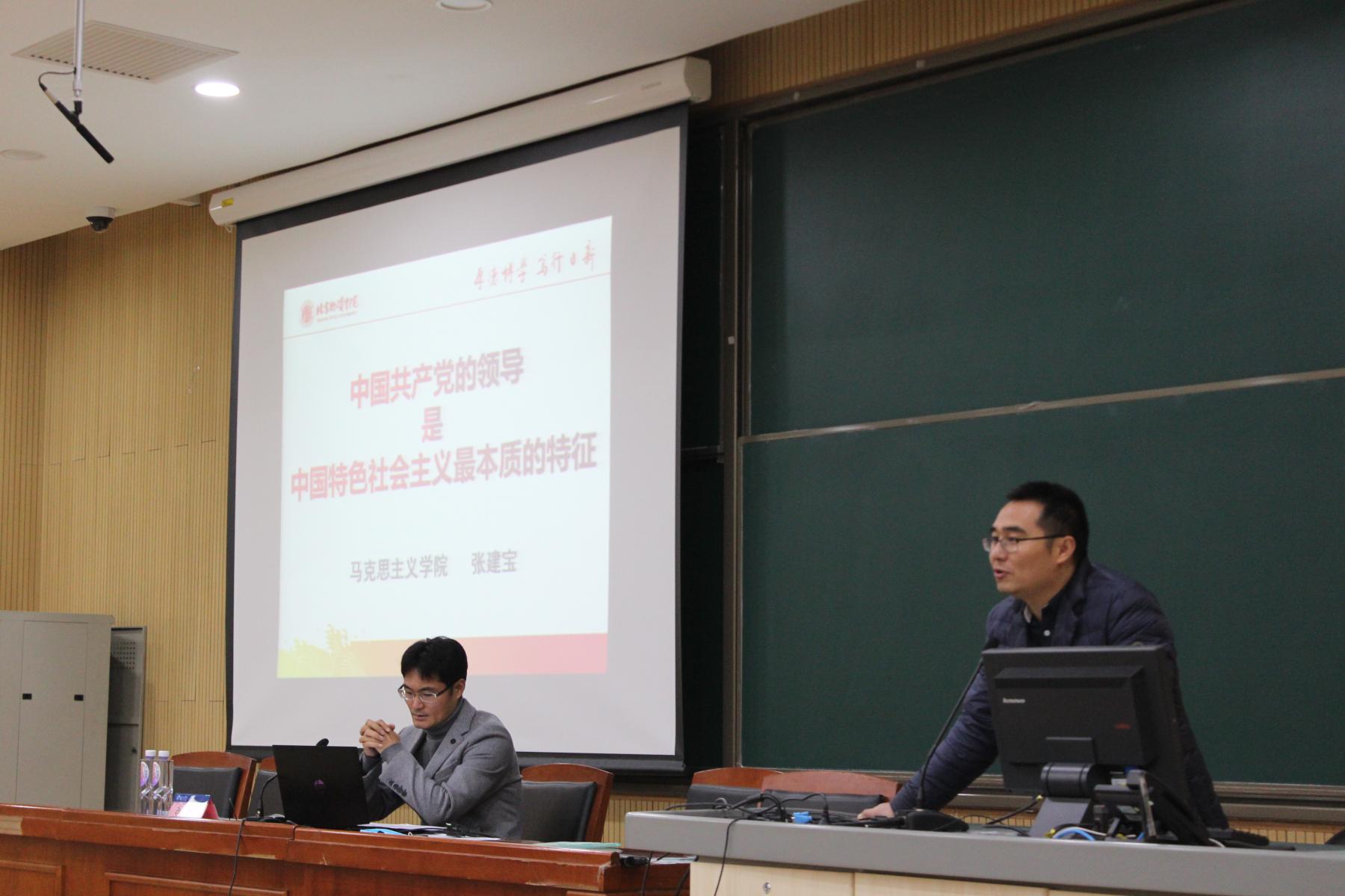 2020年11月18日中午12点30分,2020年秋季学期初级党课第四讲在二教一报顺利举行。本次党课以“中国共产党的领导是中国特色社会主义最本质的特征”为主题,特邀beats365官方网站马克思主义公司党委副书记张建宝老师作专题报告。beats365全体2020级本科及研究生共青团员共267人参加此次学习。本次党课由公司党委副书记毛文富老师主持。