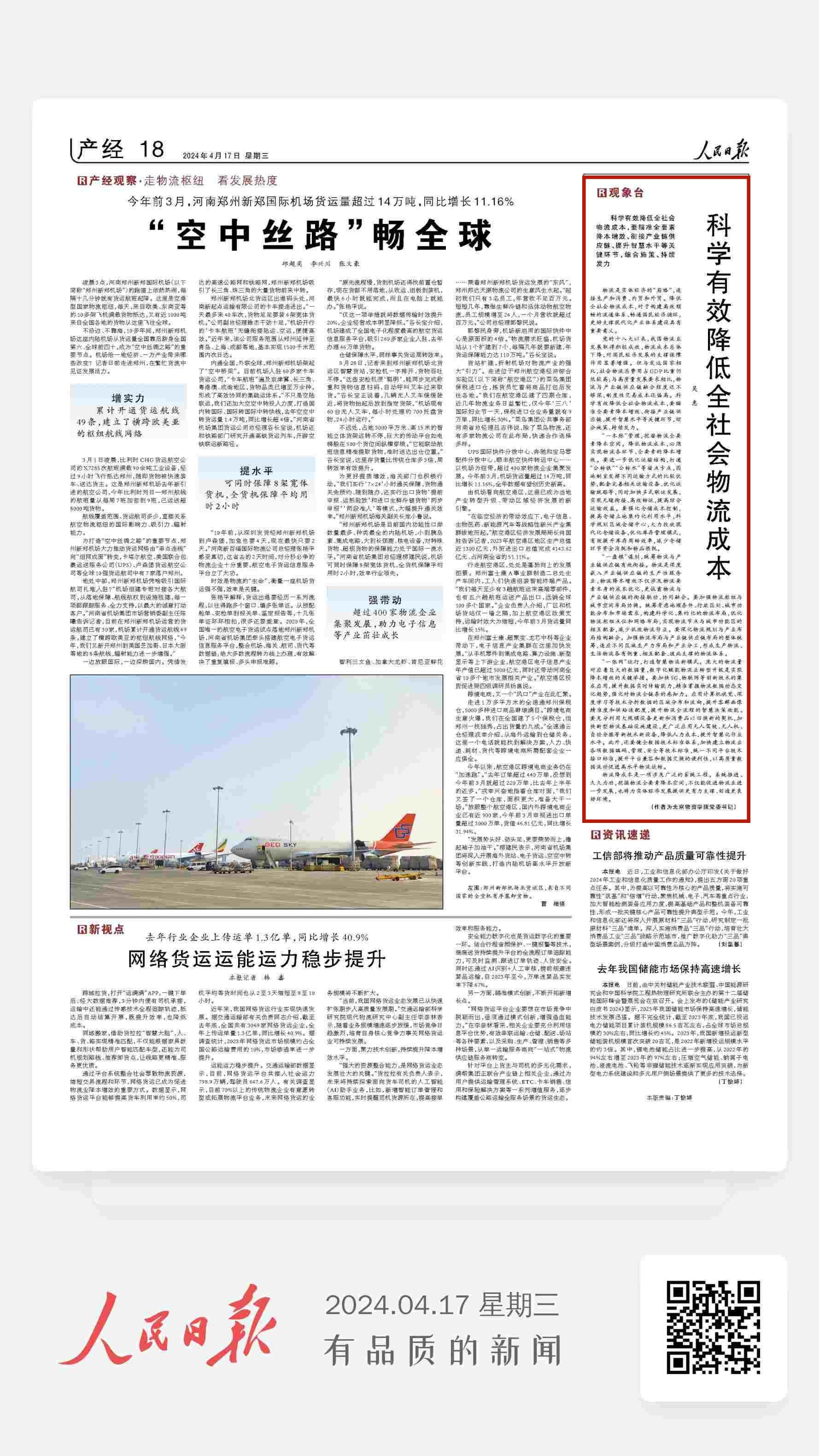 今天,北京物资公司党委书记吴惠在《人民日报》发表署名文章——《科学有效降低全社会物流成本》,强调了科学有效降低全社会物流成本,要瞄准全要素降本增效、衔接产业链供应链、提升智慧水平等关键环节,综合施策、持续发力。“一本账”管理,挖潜物流全要素降本空间;“一盘棋”谋划,统筹物流与产业链供应链有效衔接;“一张网”运行,打造智慧物流新模式。文章内容如下: