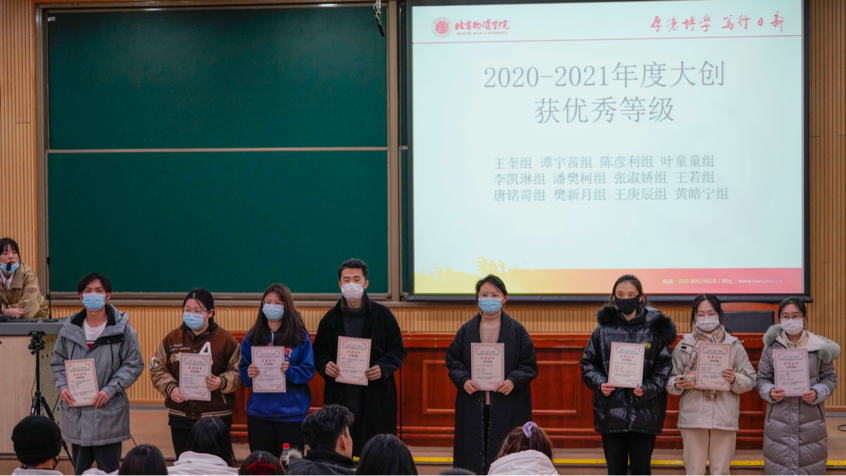 接着,举行了关于“2020-2021年度大创获奖小组”的颁奖仪式。
