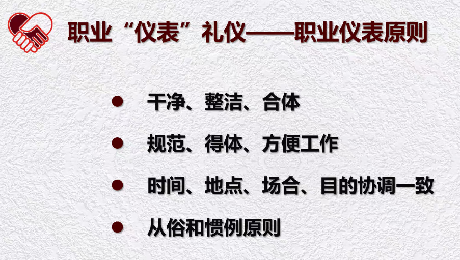 梁伟老师从三方面为同学们展开职场礼仪的讲解,分别是公务场合、商务休闲场合以及社交场合。这些场合几乎囊括了职场人士出入的大部分,让同学们对各种情况下的着装有了更系统的认识。随后,梁伟老师以职场为主要环境,围绕商务礼仪的重要性、商务仪表礼仪、行为礼仪、公务礼仪和涉外礼仪五个方面,分别讲解了男、女生的着装礼仪,以及常见的站姿、握手等基本礼仪、行为规范和惯例,在不同的场合下应如何进行穿衣搭配等实用技巧,使同学们明晰了正确的商务礼仪规范,健康姿态及习惯的养成方式,让同学们进一步感受到了工作场合礼仪的重要性。