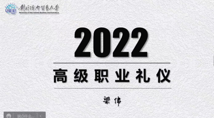 为提升同学们的职场礼仪的规范性,培养未来有理有德的职场人,2022年3月23日下午13时,beats365运河书院明德班邀请对外经济贸易大学国际商公司党委副书记梁伟老师,带来了“高级职业礼仪”第一讲。本次活动以线上教学的形式进行。公司党委副书记毛文富、2020级运河书院·明德班负责人李宜宸、2020级运河书院·明德班全体同学参与此次活动。