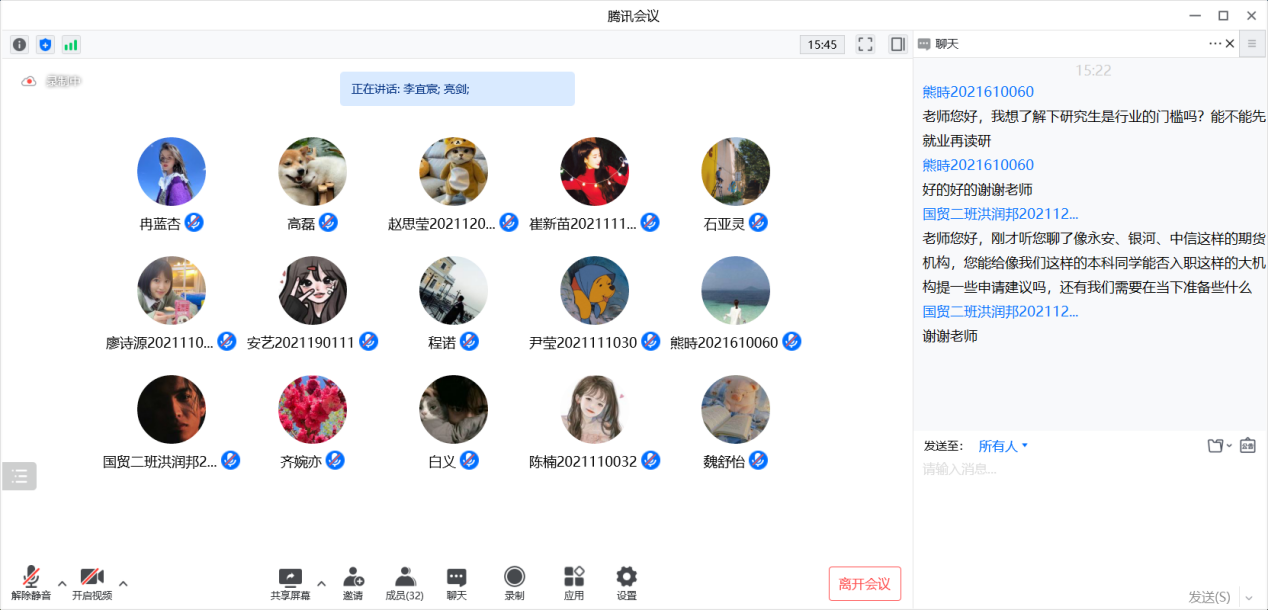 为帮助同学们做好职业生涯规划,更好地了解期货行业相关政策,并结合自身情况选择就业方向,2022年4月6日下午15时,2020级运河书院·明德班邀请期货公司负责人张建亮,为同学详细讲解期货方向入行门槛及相关工作内容等。本次活动以线上教学的形式进行。2020级运河书院·明德班负责人李宜宸老师、2020级运河书院·明德班全体同学参与了此次活动。