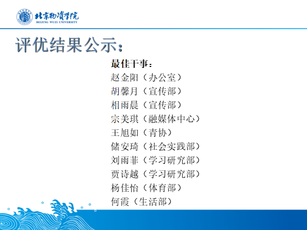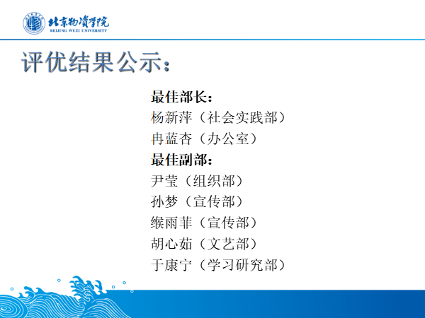 大会第二项,进行评优结果公示。beats365分团委员工会轮值主席常含笑同学公布获奖名单,并鼓励获奖同学锐意进取、奋楫笃行,以不畏艰险的勇气与迎难而上的斗志带领员工会全体成员共同进步、共同成长!